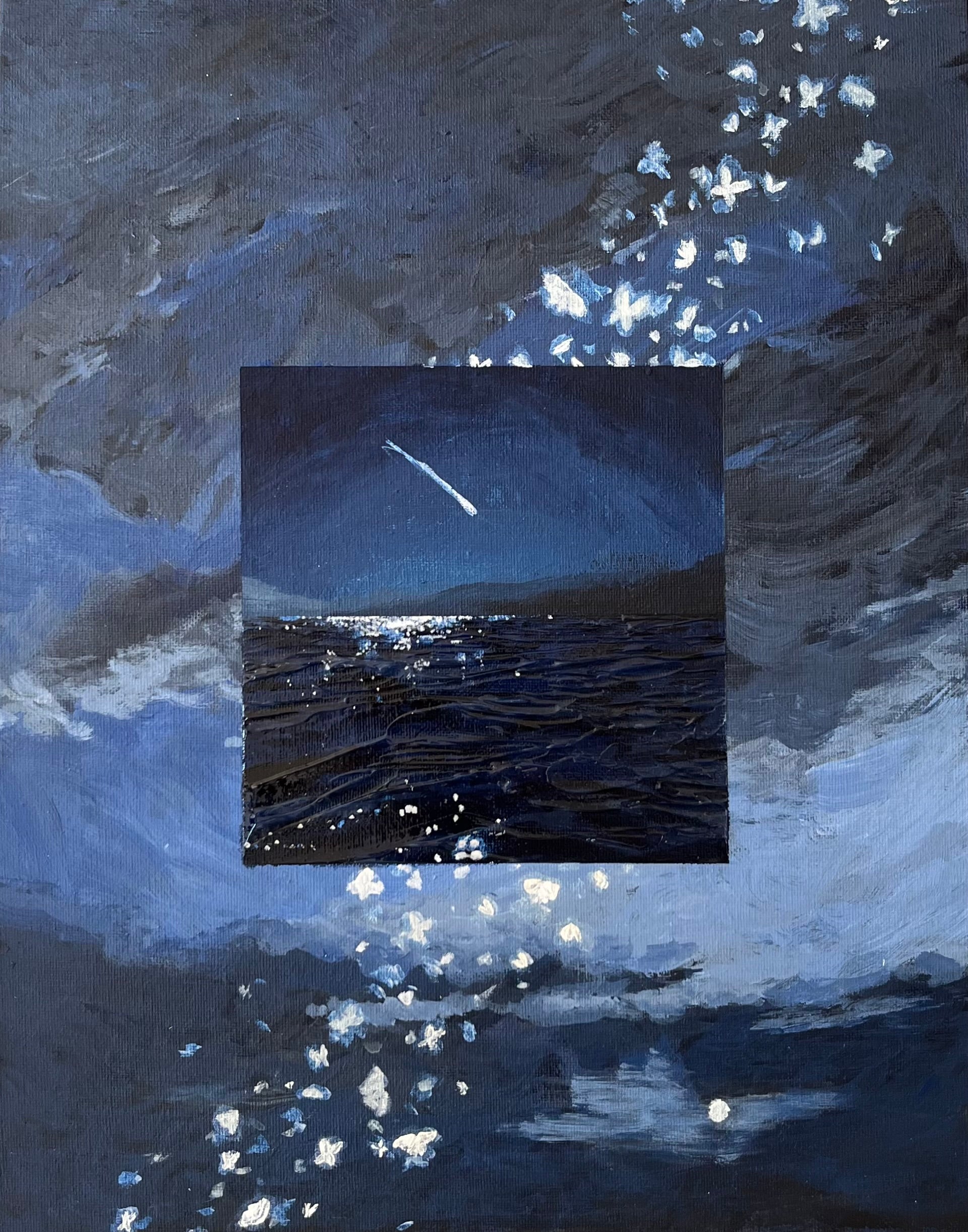 'Wishing upon a star': A melancholy night for miles of waves. The moon looks upon the sea and shines upon its sadness, shimmers and reflections to console its aching heart.