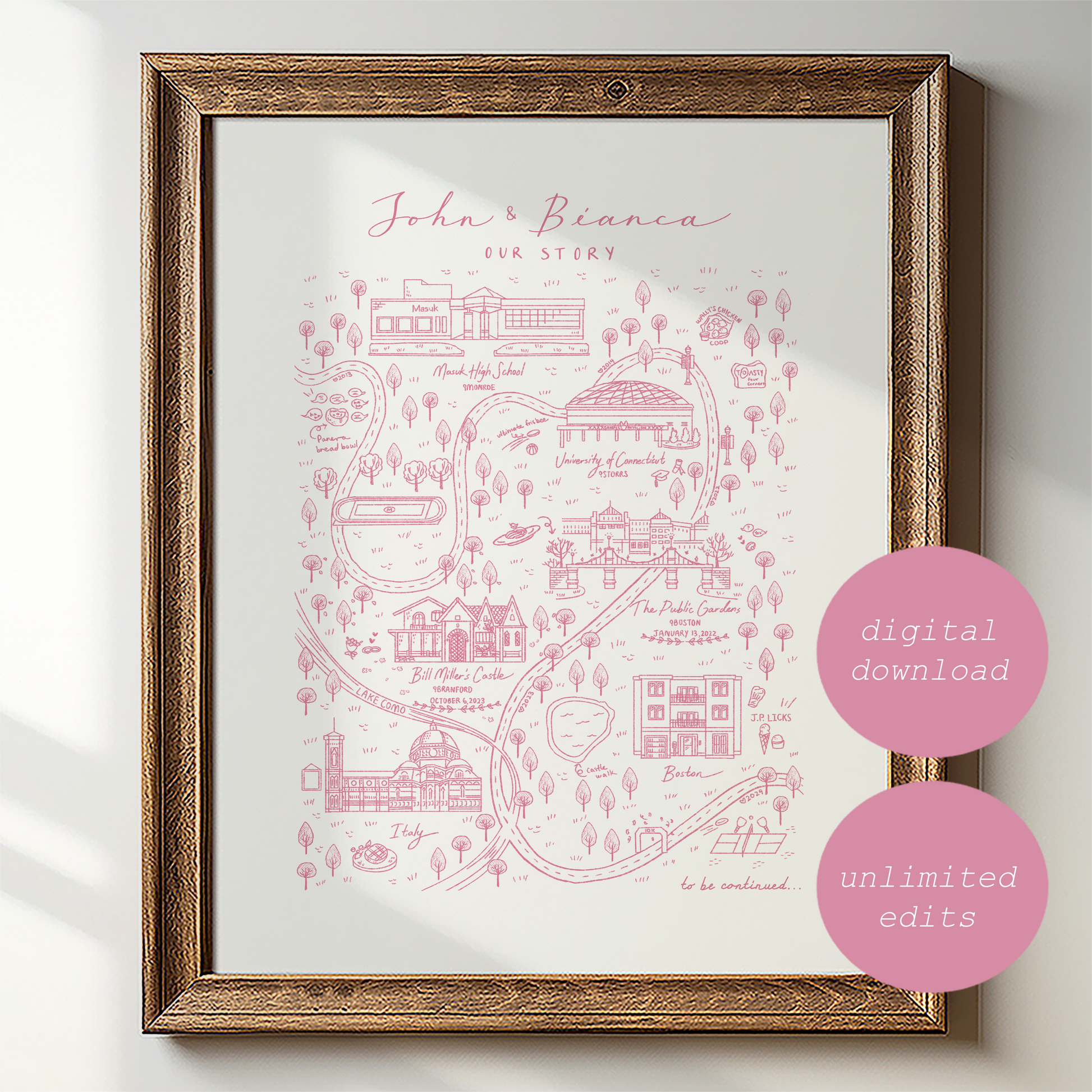 Thank you for inviting me to create a lasting tribute to your love story with my Personalized Relationship Journey Map. I am grateful to help celebrate your relationship in a truly unique and unforgettable way! 💗
